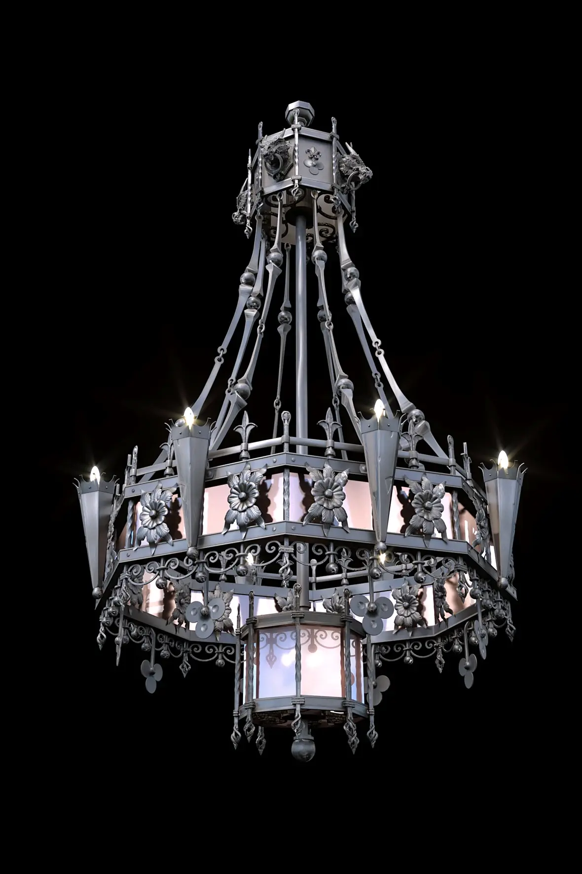 Есть кованная люстра в Замковом стиле .