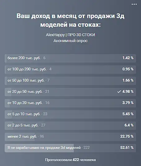 Это да. Из скрина с прошлой страницы видно, как падает доход, если бросаешь моделить. Хотя с другой стороны не так резко, как если бросаешь работать в офисе )))