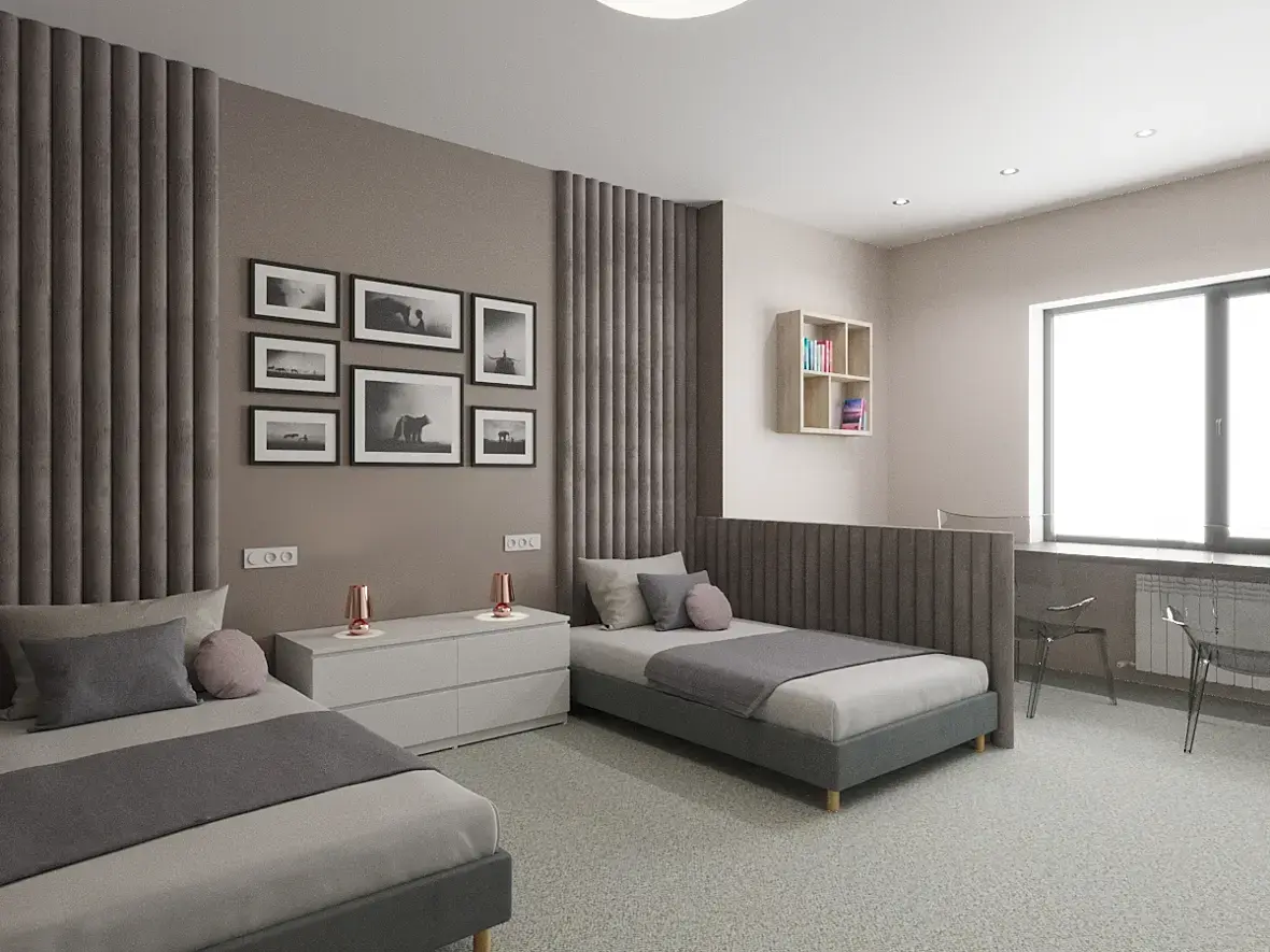 | Мне нравится дизайн! 1. Надо настроить свет. Начинайте с окон, сначала свет за окном, потом внутри помещения. 2. Не понятно что за покрытие на полу. 3. Детали нужны-они оживят интерьер(шторы, аксессуары, декор и тд.) 4. Ну и постобработка, контраста надо добавить) First Level- Молодец! |