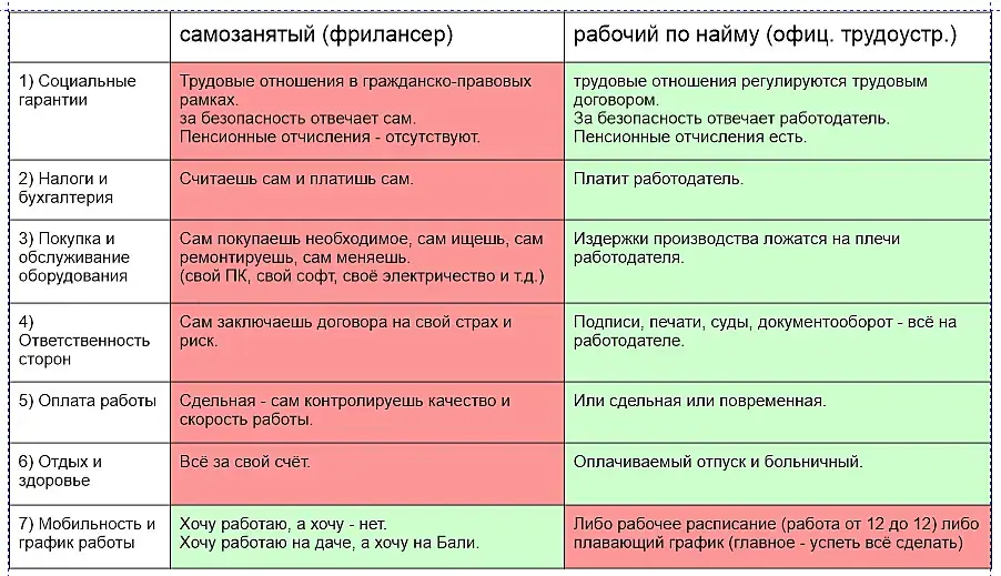 PS А нужны ли пенсионные отчисления, а разве работодатель не платит копейки за отпуск, а разве з/п не начисляется по минималке+проценты и премии из-за которых идёт переработка часов - всё это уже другой вопрос. У фрилансера всего этого просто нет