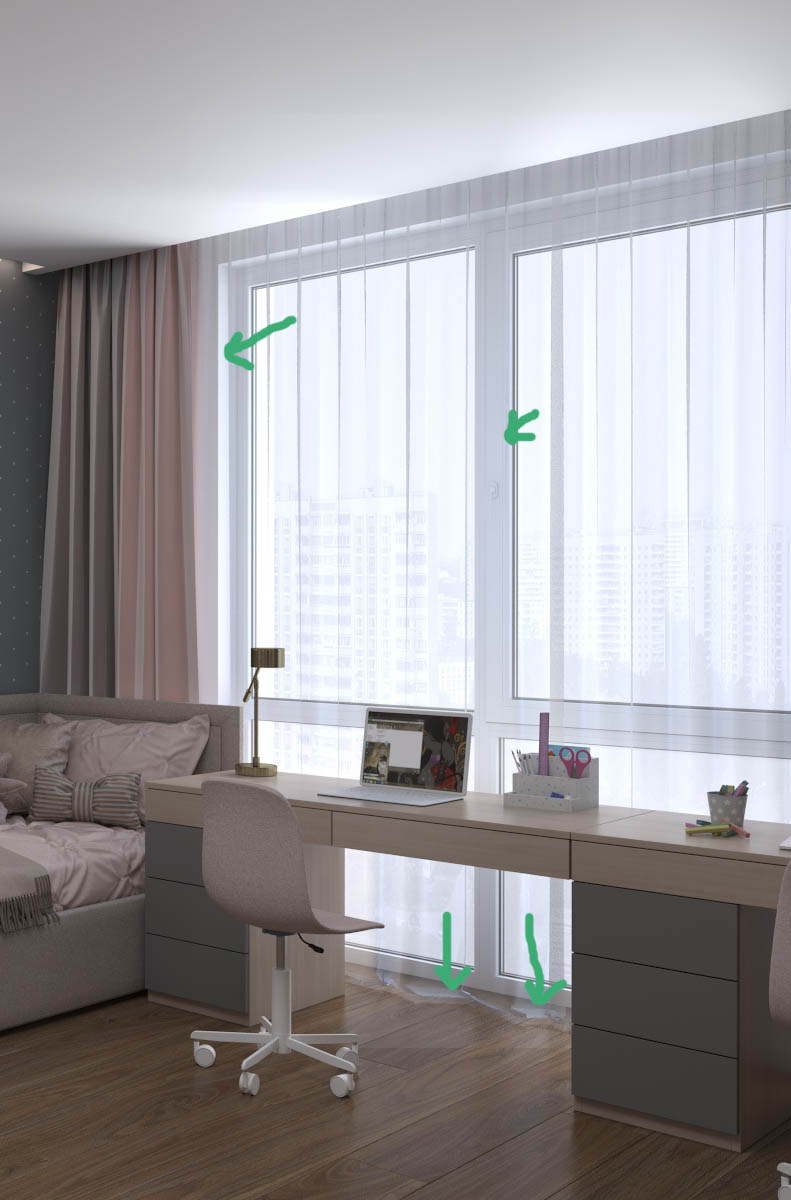 Ну а вообще то говоря, я не вижу большой проблемы в том что за тюлью слегка голубоватые отсветы. Выглядит вполне симпатично. Ну в целом картинка имеет холодный оттенок, я бы в фотошопе через камера рав поправил бы немного баланс белого в сторону теплого и все было бы отлично, избытки голубого уйдут.