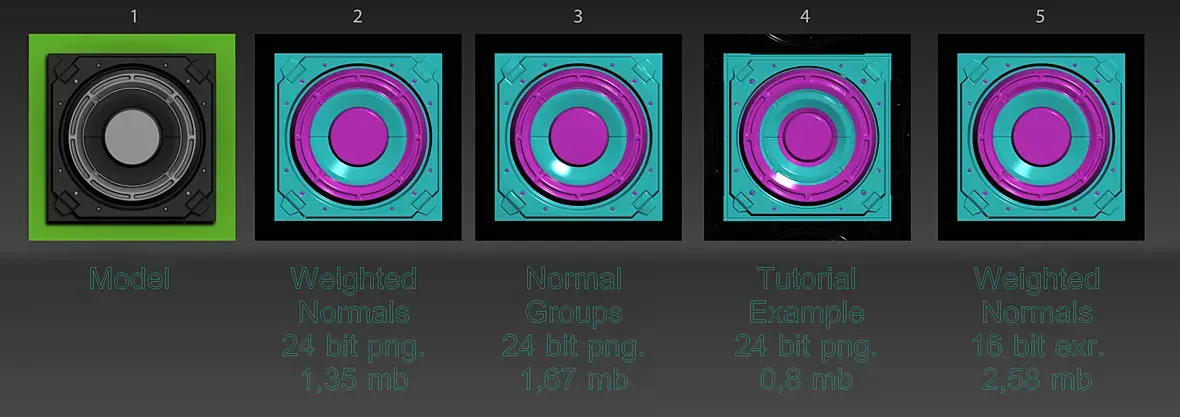 Запекание карты нормалей с примененным модификатором Weighted Normals, формат png. 24 bit