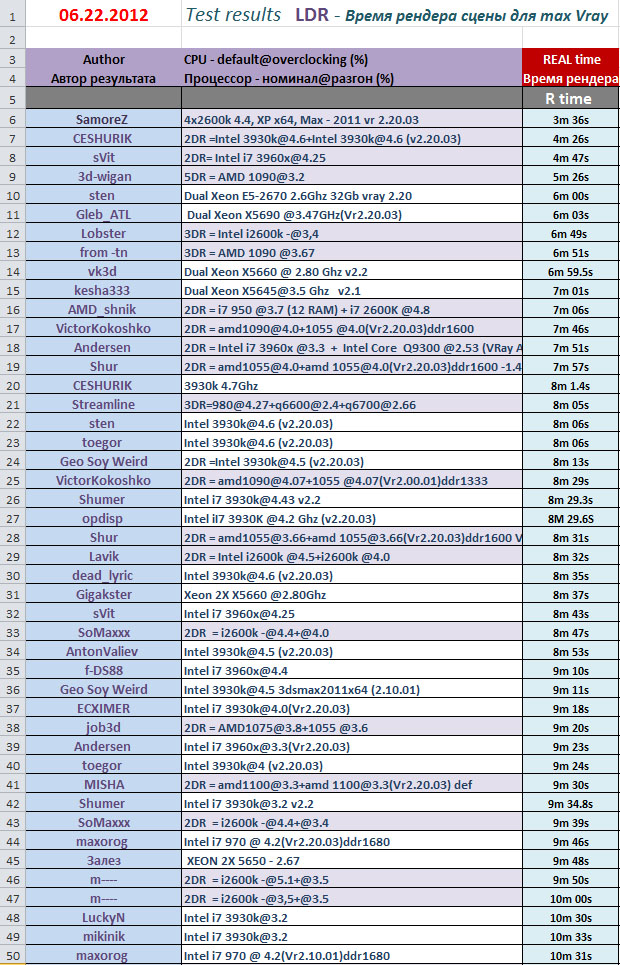 Универсальная сценка LDR тест производительности CPU в связке макс вирей Как всегда, просьба рендерить "как есть" - открыли, - нажали рендер - ничего не меняя И там же, в пункте 3,Для энтузиастов - рендер ферм по рекомендациям 3Дящихся ещё более тяжёлая сцена LDR FARM NEW - Легкая сцена "минутка"LDR easy - для проверки производительности в пробах или просто быстрого теста макса-врея Сцена "минутка"- процессоры i7 3770k и FX 8350 - по умолчанию одинаково рендерят её за 60 секунд[/img] ПАКЕТ ТЕСТОВ ПОД VRAY 2.40.03 max 2013http://yadi.sk/d/5F9675kV34LNzhttp://4.bp.blogspot.com/-56fcXNp7vPg/UrPwImnXY-I/AAAAAAAADFs/77uURYKftQQ/s1600/LDR1.jpg