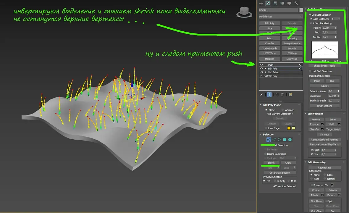 Хотя, встречный вопрос - как выделить все вершины на неровной меховой поверхности, чтоб их автоматически сколлапсить по их индивидуальным векторам роста, чтоб они не все в пучок собрались? Самой было бы полезно и интересно знать ответ, если он есть..