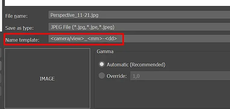 В настройках есть Name pemplate но там выбор не велик только Камера-вид и день-месяц-год..
