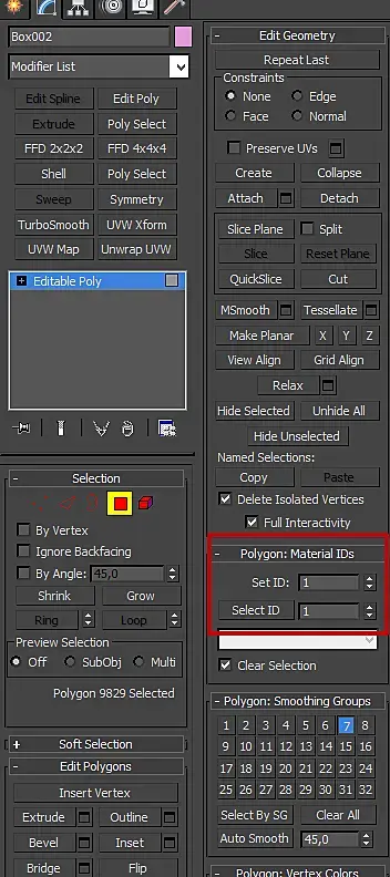 Просьба быть более ясным в ответах. То что каждому под материалу присваивается ID я в курсе, но где именно увидеть ID выбранного объекта или полигона? Дайте путь! Почему не говорите? Если я в модификаторе "Edit Poly" выбираю объект или полигон , то в контекстном меню "Object Properties" у выбранного объекта нет никаких ссылок на ID. Невозможно увидеть к какому материалу принадлежит выбранный полигон.