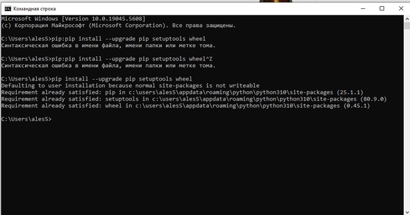 3. Обновление pip и setuptools Иногда проблема может быть связана с устаревшей версией pip:pip install --upgrade pip setuptools wheel