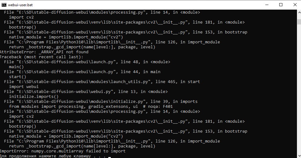 8. Проверка архитектуры Убедитесь, что архитектура Python и NumPy совпадают:python -c "import platform; print(platform.architecture())"