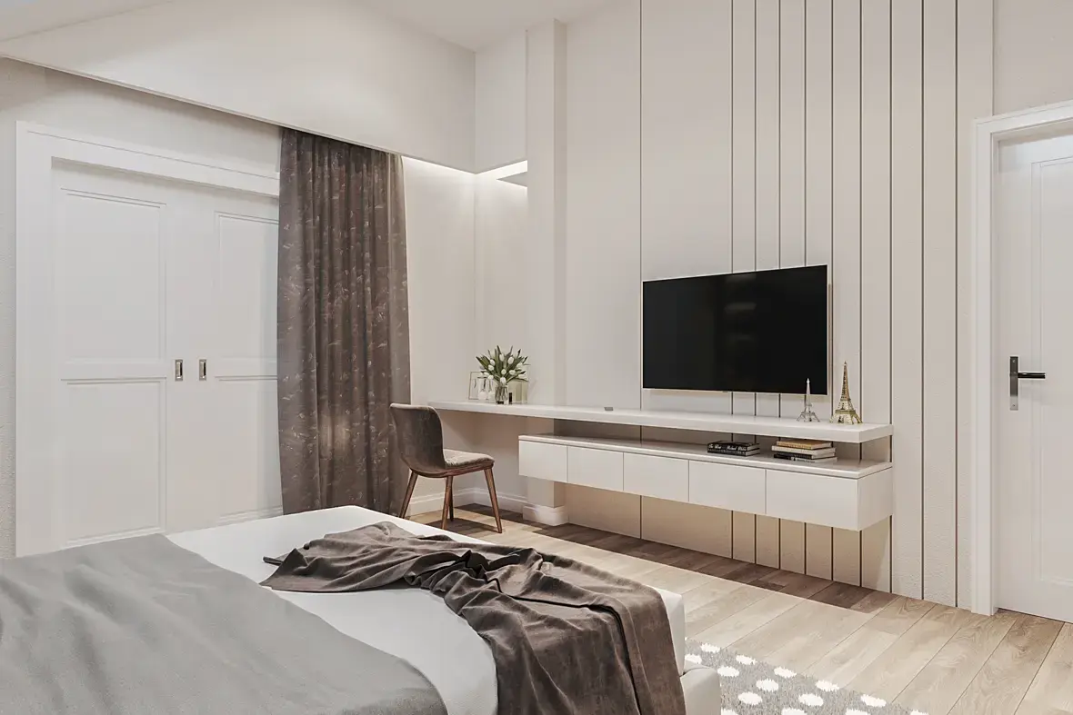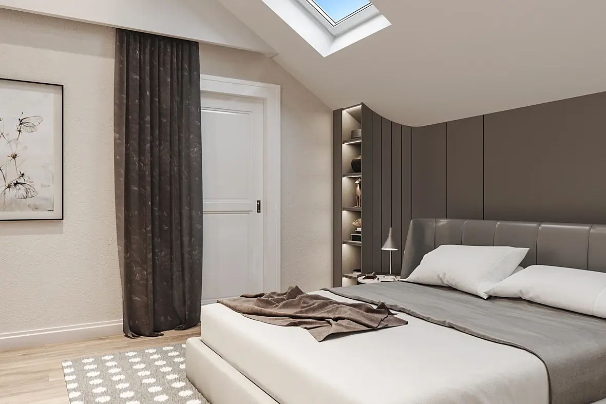 Идею с шторами где двери не совсем понял, ну допустим для итима закрыть, и что бы дверей поменьше, ок. Тогда сделайте их так, что бы они смотрелись красиво, сейчас они выглядят лишними. Как вариант, убрать их совсем, вместе с нишами сверху и раздвижными дверьми. Если морочиться с дверьми, то как вариант поставить скрытого монтажа. И потом уже подумать над оформлением стен.