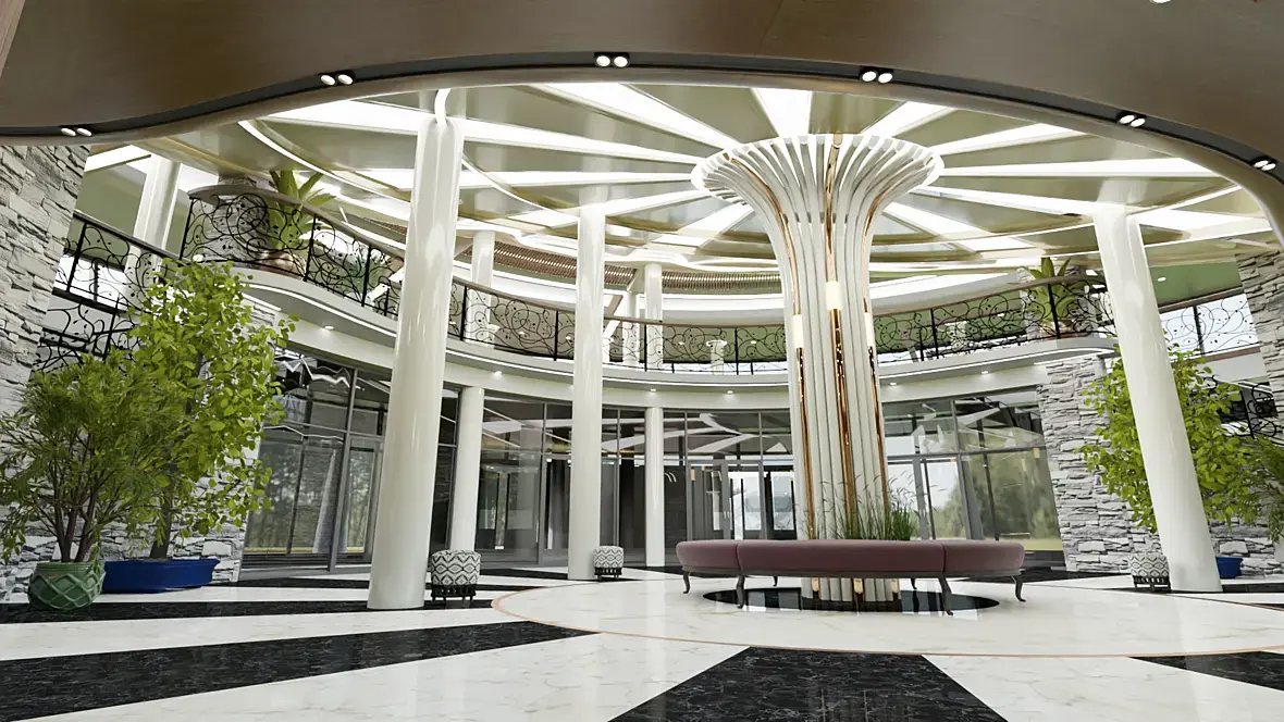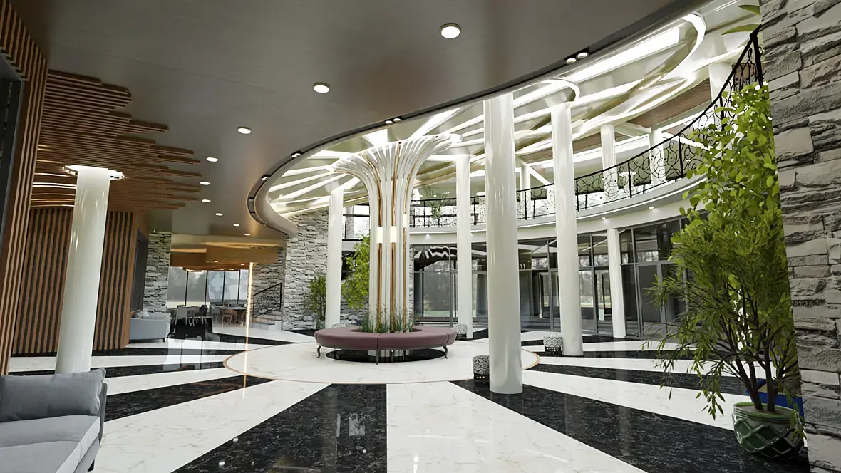 Здравствуйте! Представляю Вам интерьер вестибюля драм театра в Хакасии. Помимо вертикалей, которые я выровняю, что еще можете советовать мне исправить или сделать, доработать? Визуализации делал в Blender с помощью Cycles, могу переделать в 3д макс с corona