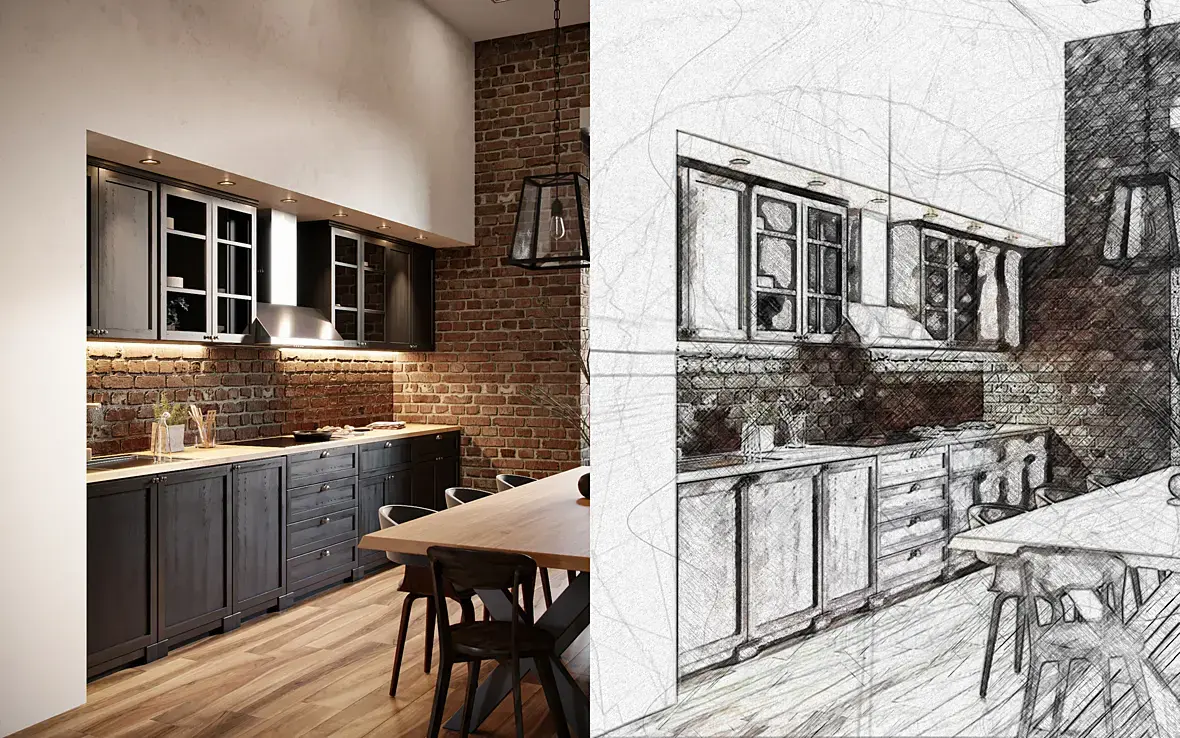 Интересна подобная подача интерьера. Как считаете - в чем нарисовано? Исключительно графика плюс фильтры фотошопа? Или добавление ручной обработки? Ваши мнения? Как добиться такого?