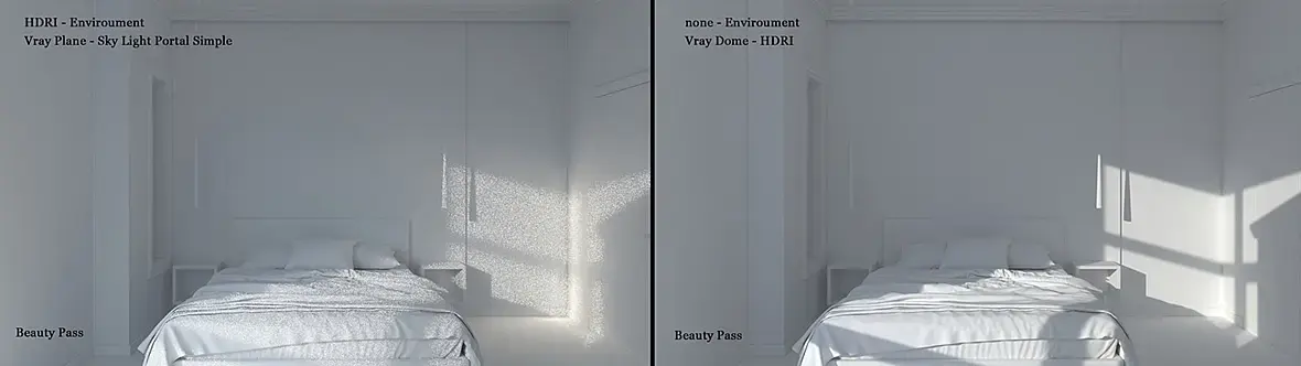 Проблема: Есть Интерьер, в окружении стоит HDRI 4K в оконных проемах Vray light (Sky light Portal) и стоит галка Simple. В Hilight зонах СИЛЬНЫЙ ШУМ - Вот вопрос как от него избавится?