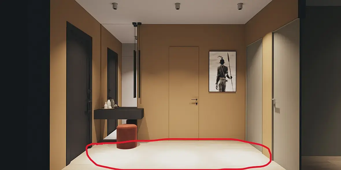 Это же альбедо, такой же краеугольный камень дизана как цвета и пропорции. Так что этот пол будет пересвечен, как бы кто того не хотел. Тут или использовать разнонаправленное освещение на стены и предметы интерьера по типу трекового, так как по на себя возьмёт достаточно света от рефлексов, ну или дизанера в это потыкать носом, хотя с этого я бы и начал ^_^