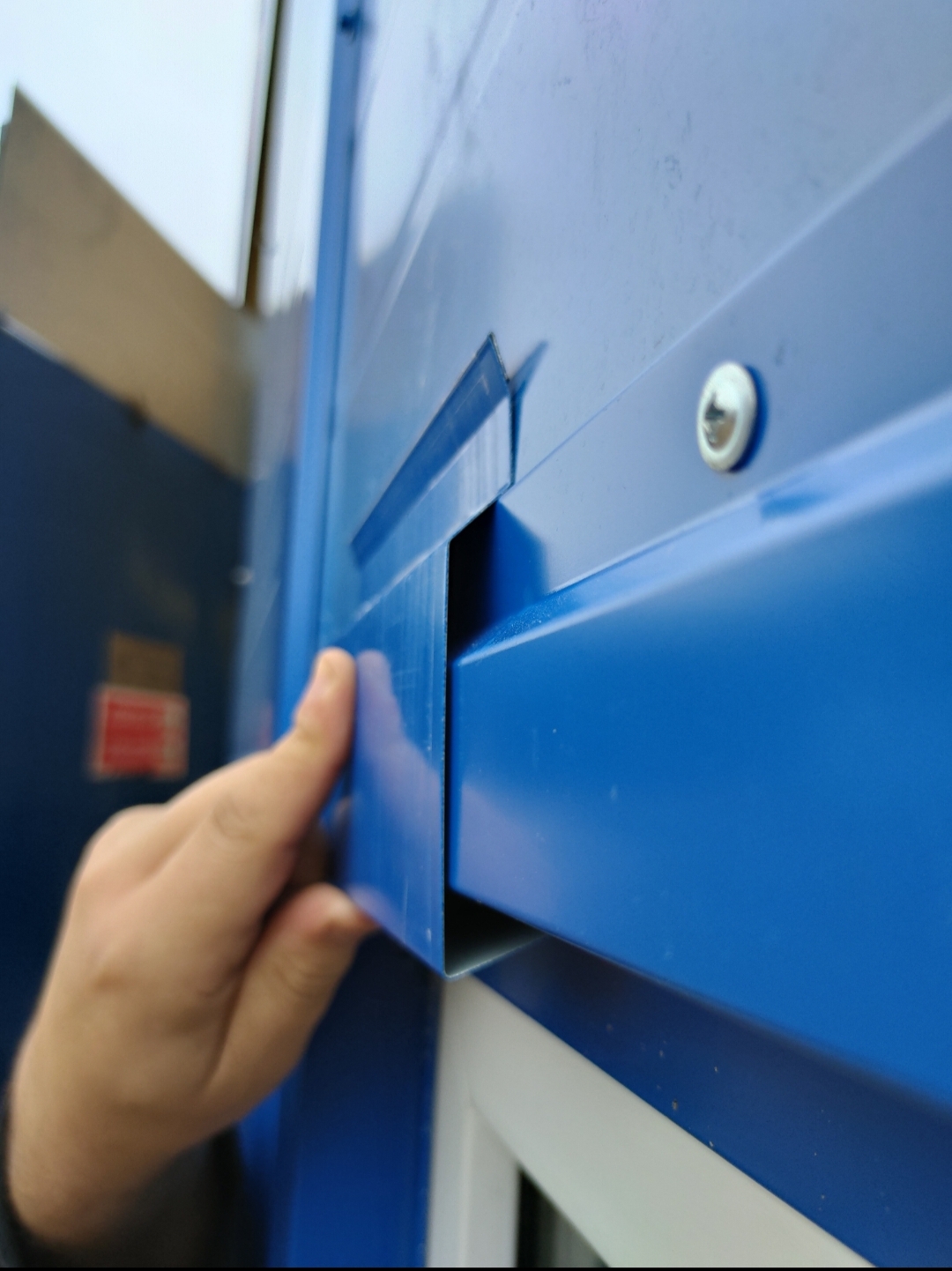 Кроится на ЧПУ-лазере либо рубится гильотиной в размер (в зависимости от сложности геометрии). Затем гнется на листогибочном станке.