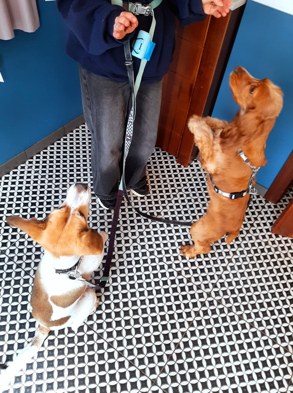 Два прикольных собакена ) оч послушные, все команды выполняют) и хозяйка милая девушка