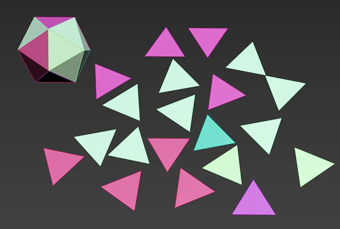 Не в тему конечно, прошу прощения, но создал сетапчик в гудини, чтоб любой низкополигональный объект раскладывался на плоскости. Просто подключаешь модель и получаешь результат. Площади каждого объекта сохранены, поменялась только ориентация каждого элемента. В данном случае это был футбольный мяч. Если таких моделей не очень много, то уже рассказали как это сделать в 3д Максе. Я предложил вариант, когда таких моделей может быть сотни, такое не всем подойдет.