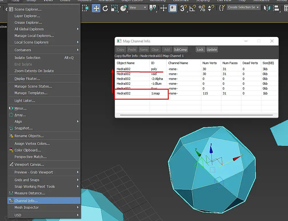 Сколлапсь стек. Сходи в edit - channel info . там скопируй инфо из маппинг канала в геометрию.