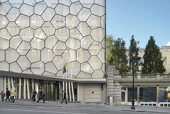 Здравствуйте! Хочу сделать здание с двойным фасадом и добавить туда стекло в таком стиле как на фото. Подскажите пожалуйста как это можно провернуть?) заранее спасибо)