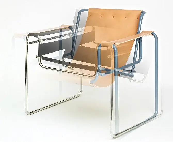 "корни" уходят в кресло Wassily 20-х годов дизайнера Marcel Breuer, но есть отличия в конструкции - таким незатейливым "ходом" современный австралийский дизайнер Henry Wilson "создал" свою модель кресла . Это то,что удалось "нарыть" по-быстренькому.