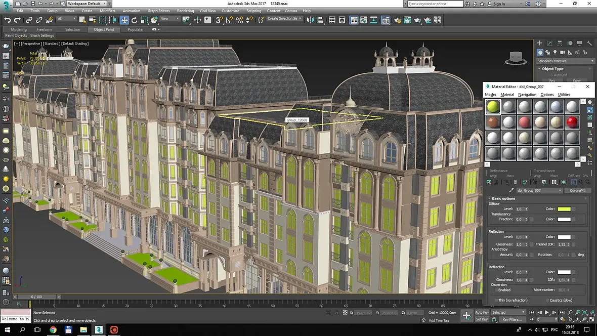 Импортировал модель из скетчап в Макс. 70млн полигонов. Теперь материалы надо перевести в corona. И задать текстуры. Но проблема в том что одинаковые материалы в скетчапе, в максе разделились в множество групп. Если например пипеткой материал стекла взять и изменить то меняется только определенные окна. Остальные окна с тем же материалом не меняются. А там окон очень много. Вопрос как объединить схожие материалы? а то там слишком много объектов. Чтоб каждому из них применить материал отдельно. Спасибо