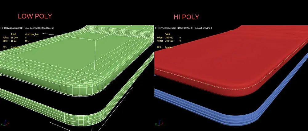 Разобрался, дело было в триангуляции, т.к. каждый софт может делать это по разным алгоритмам. Нужно было перед экспортом сделать триангуляцию для lowPoly.