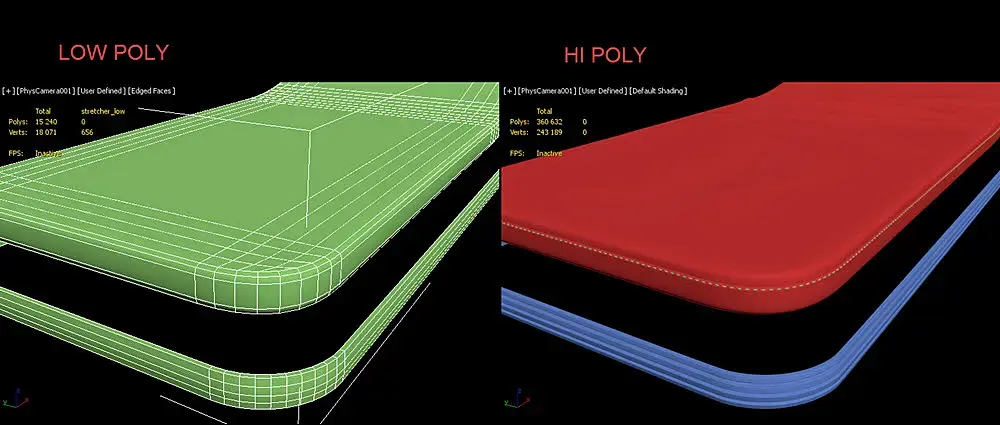 Разобрался, дело было в триангуляции, т.к. каждый софт может делать это по разным алгоритмам. Нужно было перед экспортом сделать триангуляцию для lowPoly.