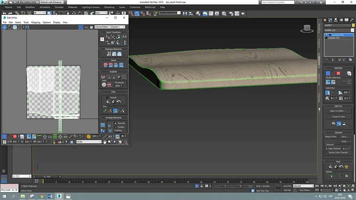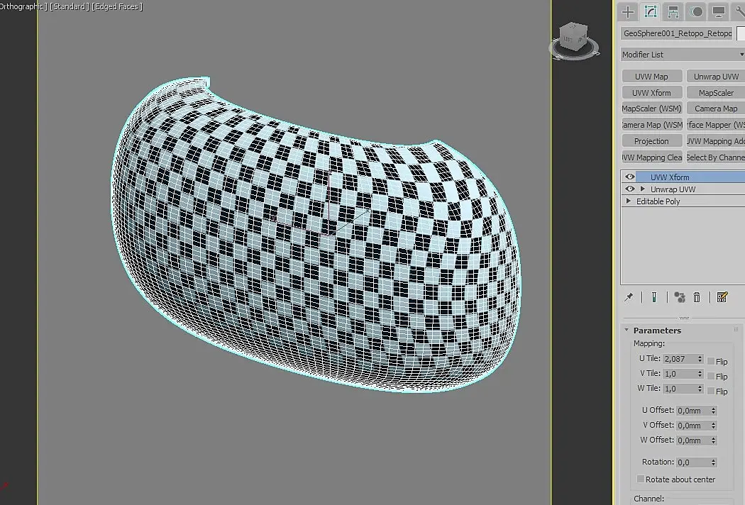 С помощю uvw xform немного выровнял текстуру, хотя все равно остались не очень ровные места .
