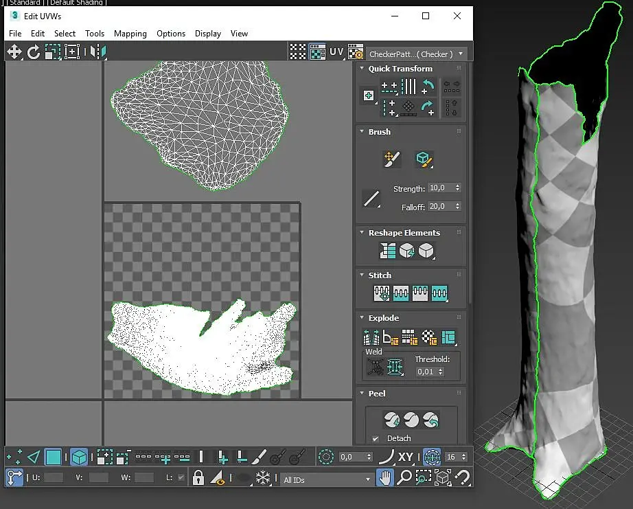 Друзья, делаю развертку ствола дерева (фотограмметрия), сделал швы для низа, отделил его, с ним все норм. А вот с основной частью не получается. Раньше делал quick peel и нормально разворачивалось, а сейчас никак не получается. В чем может быть проблема? Зеленым нарисовал как подразумеваю развертку.