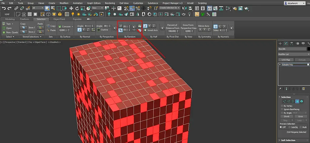 Возникла необходимость понизить плотность листвы на дереве. Для этого решил выделить рандомно 30% элементов и удалить их, но это оказалась непосильная задача для макса, так как на дереве 500 тыс. листьев и выделение просто фризит макс на долгое время (ждал максимум 20 мин).