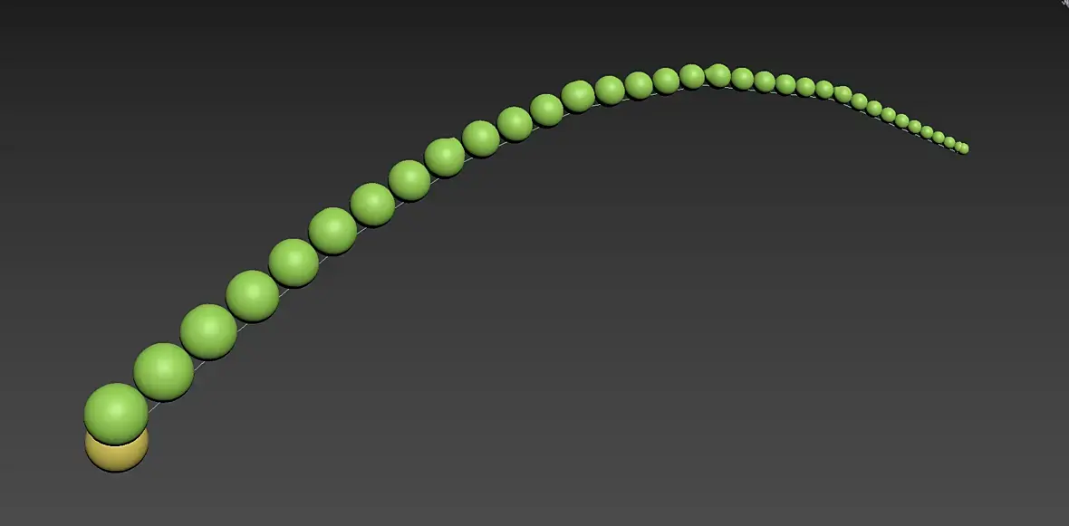 Есть линия прямая или изогнутая, неважно. Есть шарик диаметром 25 мм в начале линии. И этот шарик нужно расклонировать по линии так, чтобы в конце линии его диаметр был, например, 10 мм. То есть его диаметр должен постепенно с каждым шариком уменьшаться с шагом по кол-ву шариков.