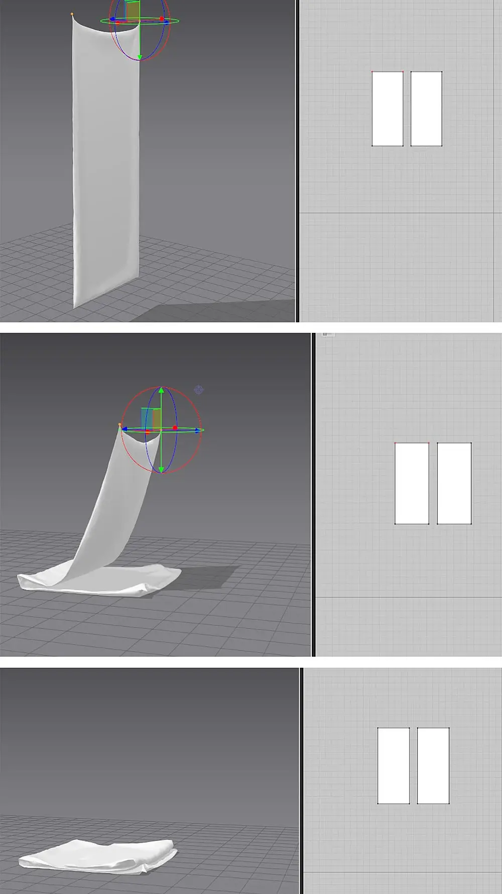 Чтобы повторить форму, установите на два угла одеяла - булавки w+лкм (раскладка должна быть англ). и прям в режиме анимации тащите булавки и складывайте одеяло так как вам нужно, так и повторите форму. Булавок поставить можно гораздо больше, как вспомогательные можно и по бокам одеяла чтобы еще на весу сложить его в двое. Чтобы надуть так одеяло, нужно делать через двойную ткань, ctrl+shift+v - создается ткань уже пришитая к этому полотну, так обычно подушки надувают.