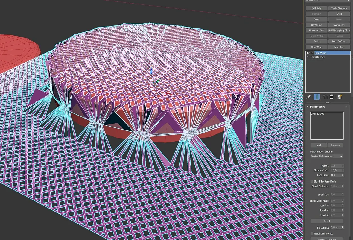 Либо делать какую то форму в максе (без складок), загнуть её по рефу,сделать развёртку.