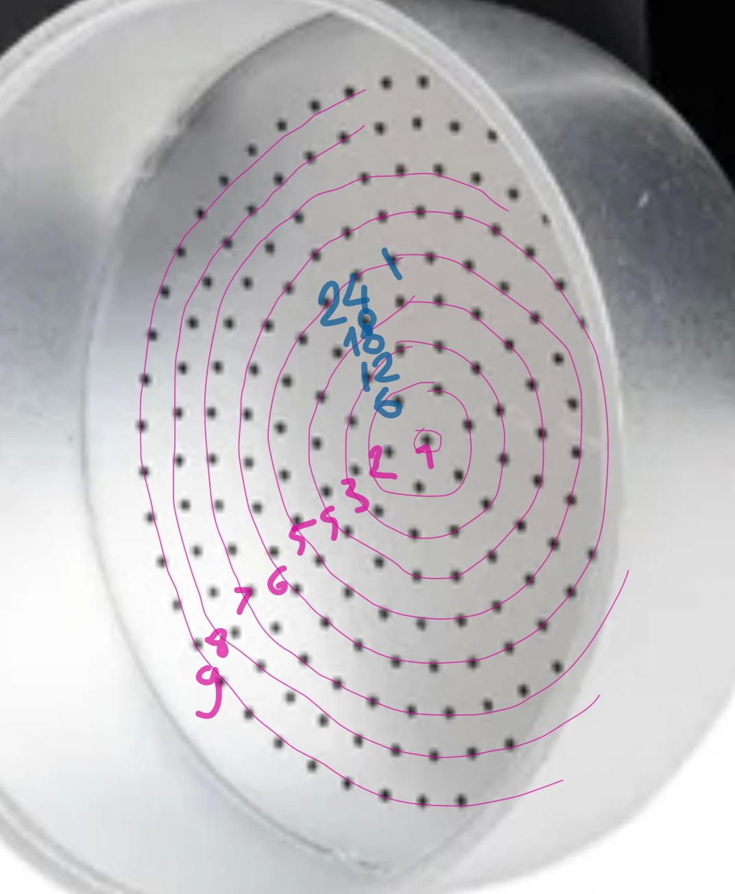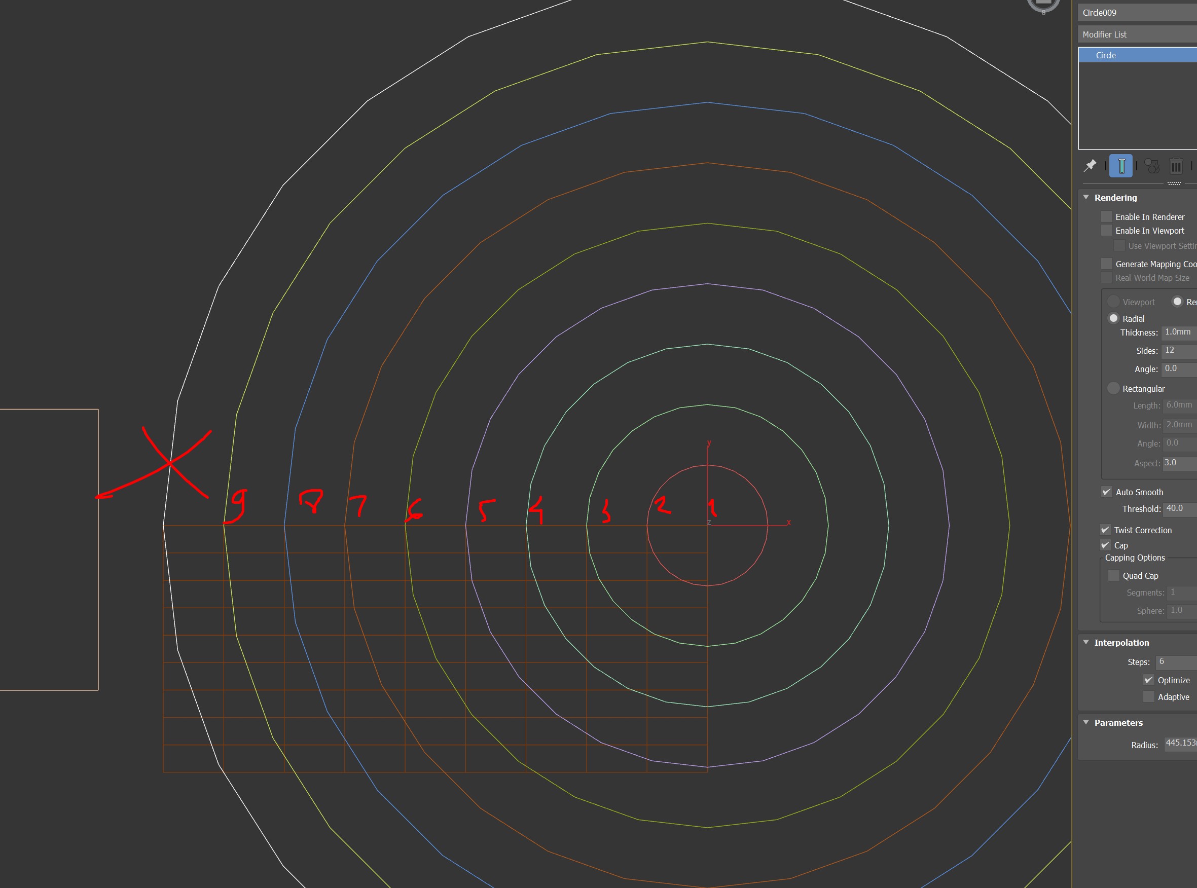 у вас по должно получиться 9 окружностей на каждой точек кратно 6