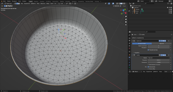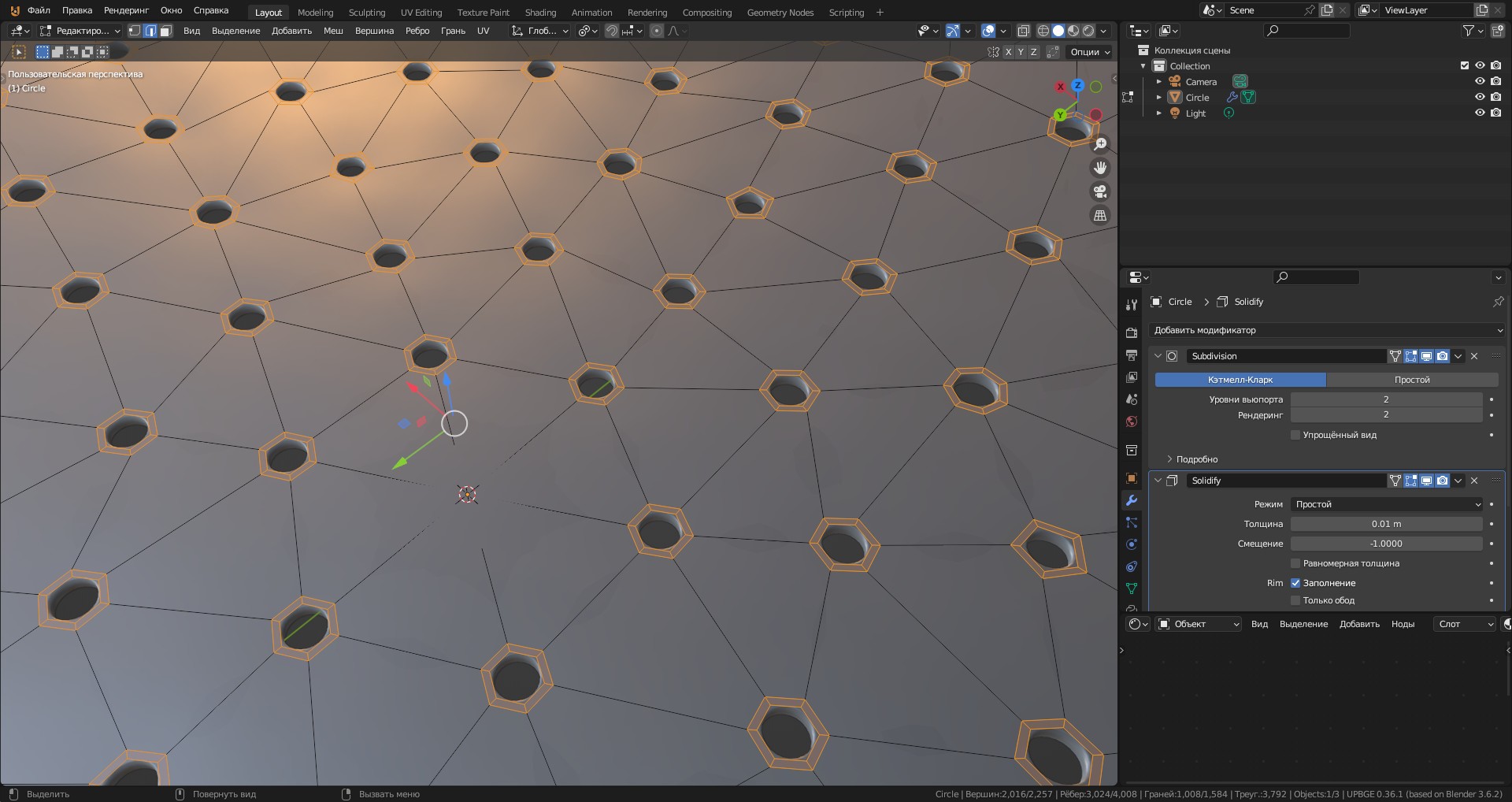 В максе это проще . И с возможностью редактирования на любом этапе . А вы просто геометрией долбите . Поменяйте количество отверстий на 3 радиусе И что заново делать ? Блендер блендер ..