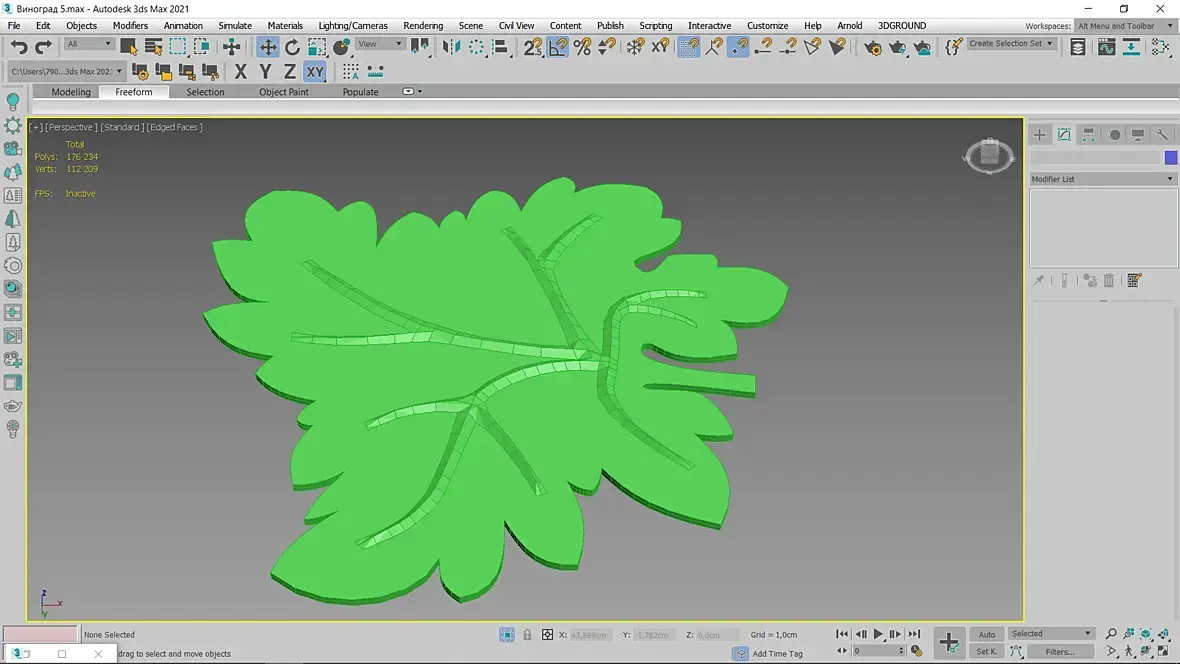 Прожилки на листик сделаны через shape merge, потом редактировались в эдит поли. Хотела сделать остальную сетку, а выяснилось, что полигон внизу закрылся от края до края, прожилки можно поднять отдельным элементом, посмотреть.
