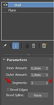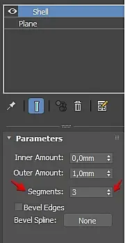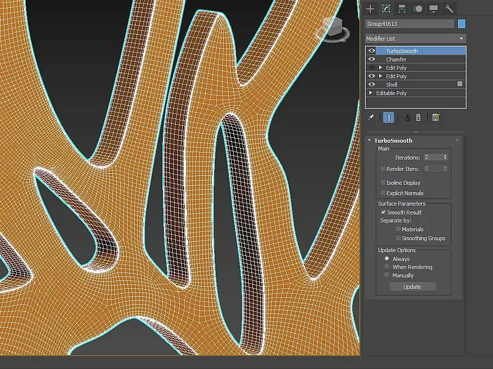 4. Экструд каждому сплайну, вдвинуть их немного в геометрию и забулить