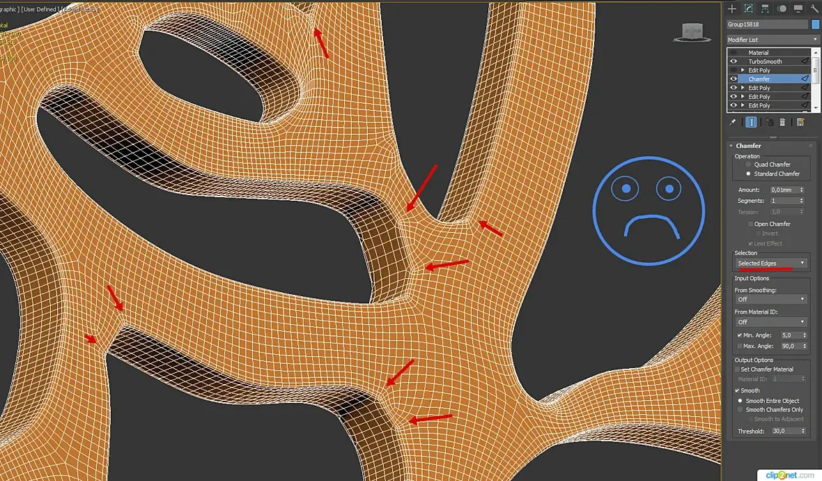 Но теперь нужно добавить эджи по бокам (желательно 3-4) для корректного сглаживания. Да, знаю, можно вручную, но есть ли более быстрый способ? Так как стул состоит из множества отверстий, и если делать дедовским методом, то это каждый ринг нужно будет выделять и добавлять нужное количество ребер.
