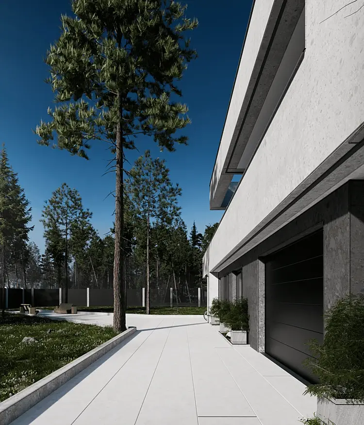 но видно, что свет и цветокор настроены не корректно отсюда и пересветы и слишком черные тени, это можно и в фотошопе вытянуть при наличии exr, хотя я предпочитаю такое исправлять в сыром рендере. но далее будет заметна проблема в материалах на растительности она слишком однотонная, в жизни все растения имеют не равномерный цвет и полупрозраночть от чего возникают разные оттенки, а у вас они сливаются в один зеленый, трава и хвойные выглядят одинаково, а этого не может быть, плюс все деревья тоже слишком уж одинакового тона, с этим тоже можно немного поиграться, тогда будет веселее и не так мрачно. надеюсь не надо объяснять как делать инстансам разный оттенок? ну и в модели много косяков, пересекающиеся плоскости, из-за них видны всякие обводки, и стыки кривые. для пущей реалистичности мусор накидывают листики и тд в углах, от стирильности избавляются, я грязи добавляю через ао вокруг бордюров и стен