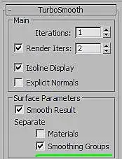 накладываете модификатор Smoth и настраиваете как надо. Потом наклдываете модификатор Turbosmoth - и ставите галку "by smoth groups" ну и в материале добавьте фейковые углы через "round edges"