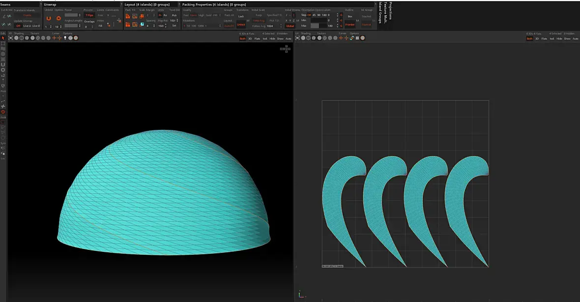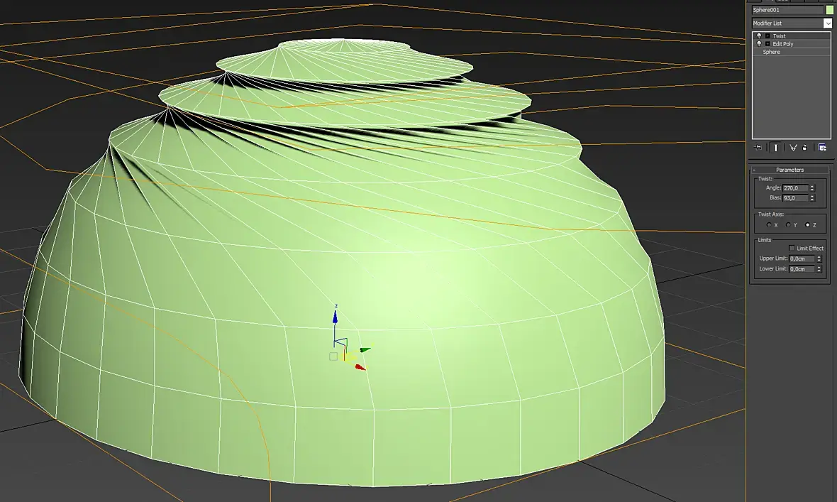 Сделать полусферу, применить модификатор Twist и закрутить ее. Затем сделать развертку, предварительно нарезав на нужные сегменты. Ну а дальше я бы через SkinWrap и Morpher пустила бы геометрию согласно развёртке