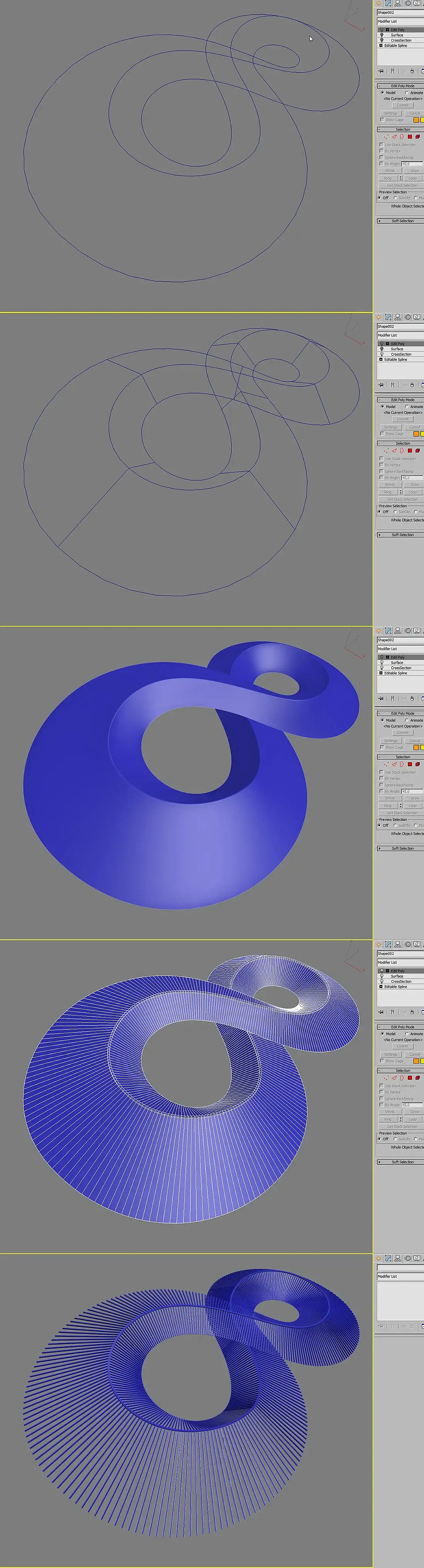 Эта Штука делаеться оч быстро при готовом сплайне в 3-4 клика и без всяких ЕРЕСЕЙ-типа кроссекшн, сюрфайс ,и нормалайз)))!!! Только едит поли и едитабл сплайн)))