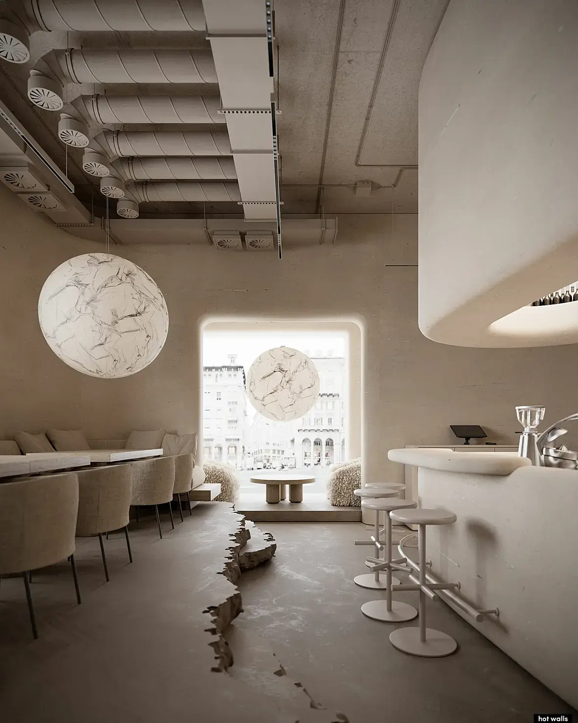 Барная стойка - здесь похожа на натуральный камень. Может быть быть по жизни из натурального камня, искусственного камня, любого основания с выведением формы "штукатуркой" и декоративным покрытием.