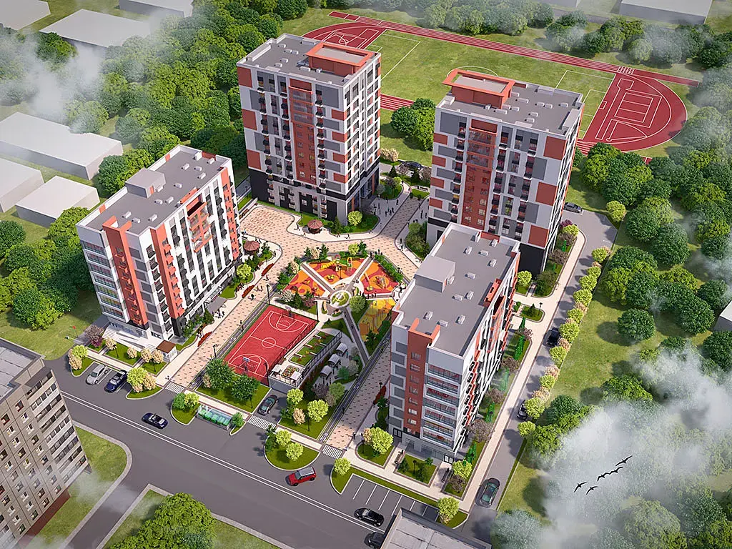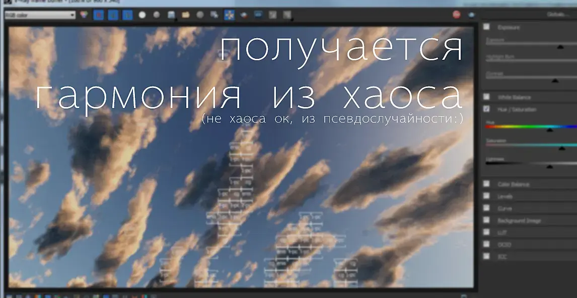 берешь картинку тучки и пихаешь ее поверх рендера в фотожопе. этож элементарно