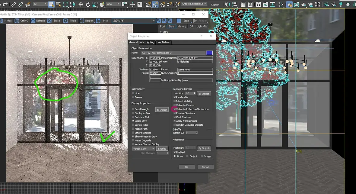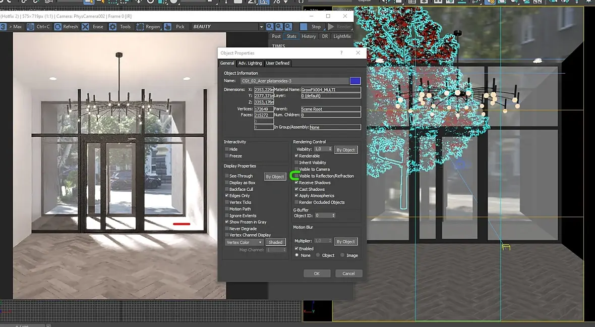 Ставлю инвизибл ту камера - его все равно видно (так как в дверях стекла), ставлю инвизибл ту рефлект/рефракт пропадает полностью вместе с тенями...