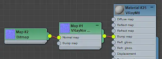 В материале VrayMtl в Bump map добавляю карту VrayNormalMap, далее соответсвенно в раздел Normalmap саму текстуру normal.