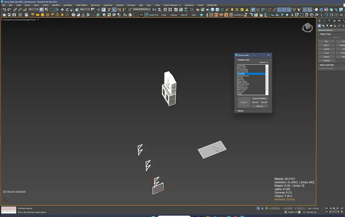 так получилось, что мне дали сцену более высокой версии 3д макса, и конечно вылезает ошибка о том, что модификатор чамфер более высокой версии и все вылетает. если экспортировать файл, то вроде все работает, но только временно. в общем я пришла к решению, что нужно найти все модели с чамфером и конвертировать в едит поли. но в гугле нашла только что-то про select by name и все. не понимаю, как выставить там фильтр на модификатор. помогите, пожалуйста