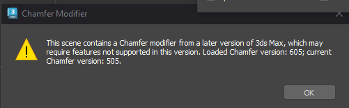версия чамфера по факту ни на что не влияет, видимой разницы нет, а вот если там edit poly модификаторы везде, то могут быть всякие чудеса и надо открывать в той версии в которой было изначально сохранено было