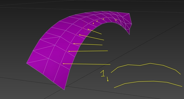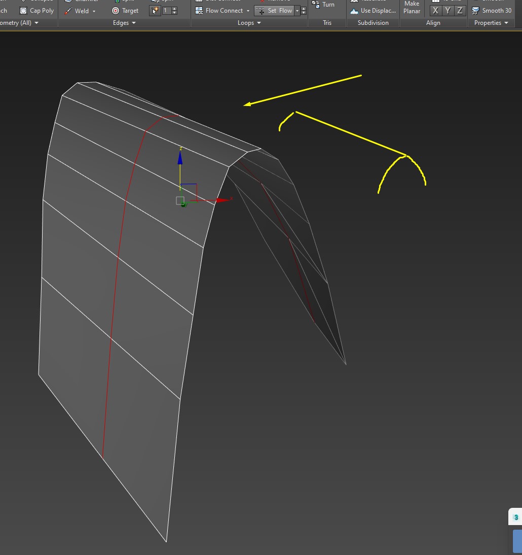 Вот я выделил еджи, вершины местами провалились, а местами выпуклись.. Рапа построил красивую изогнутую сплайн-линию. Мне надо ,что бы вершины как бы шли по этой дуге. Есть способ, что бы рапа как бы может быть примагнитил вершины к этому типа сплайну.. и так выровнял их в ровную кривую..?