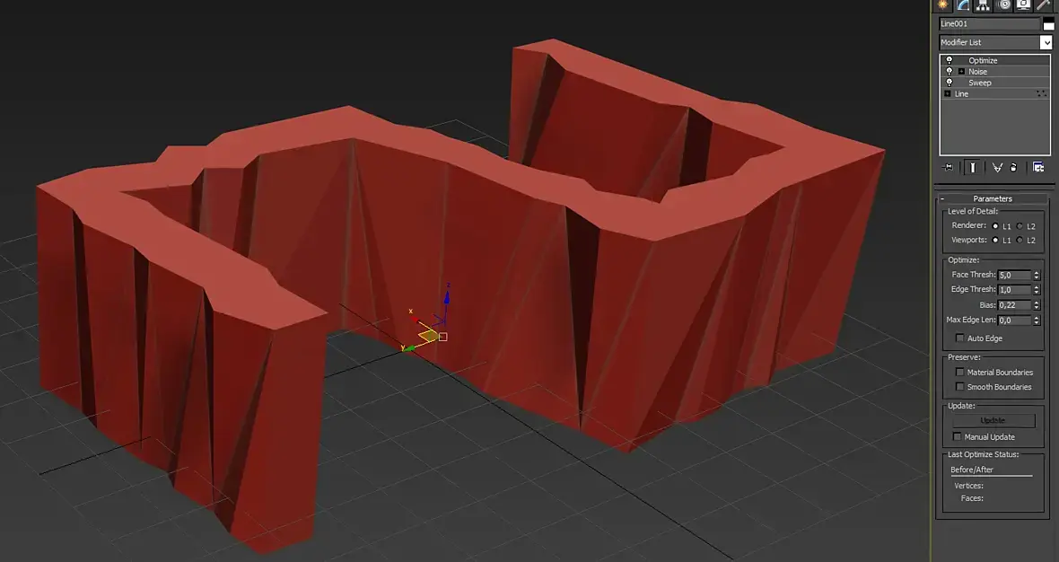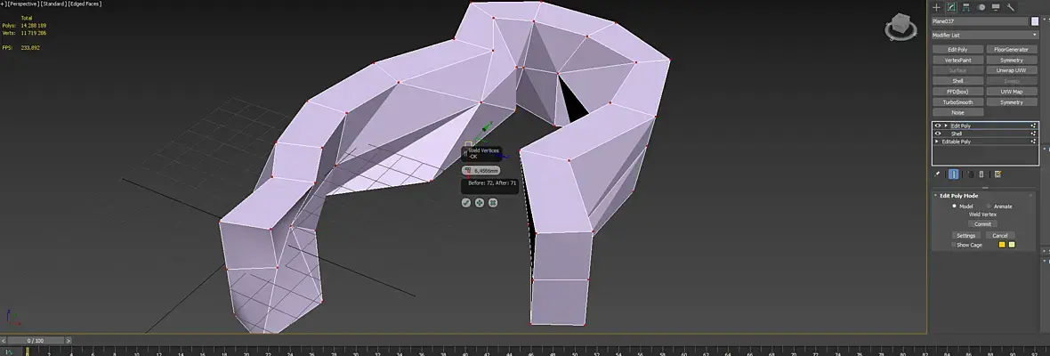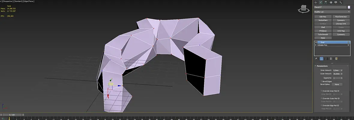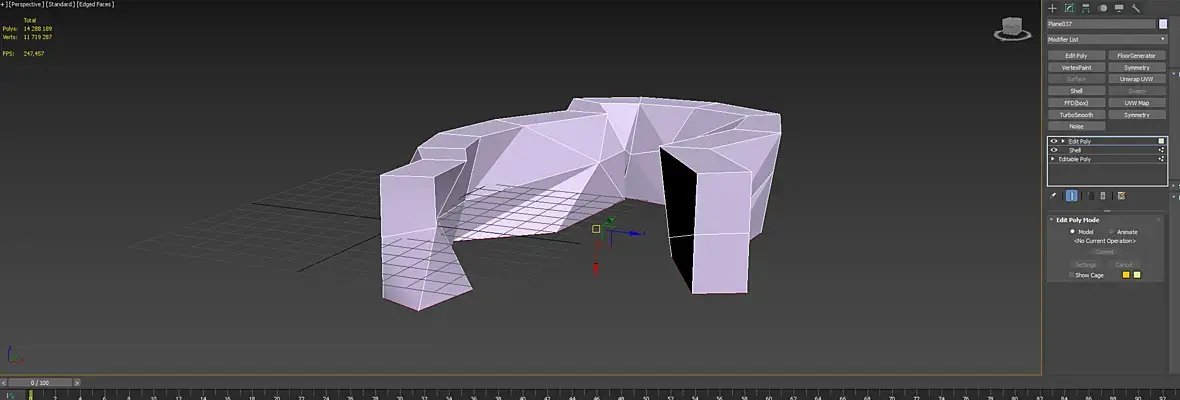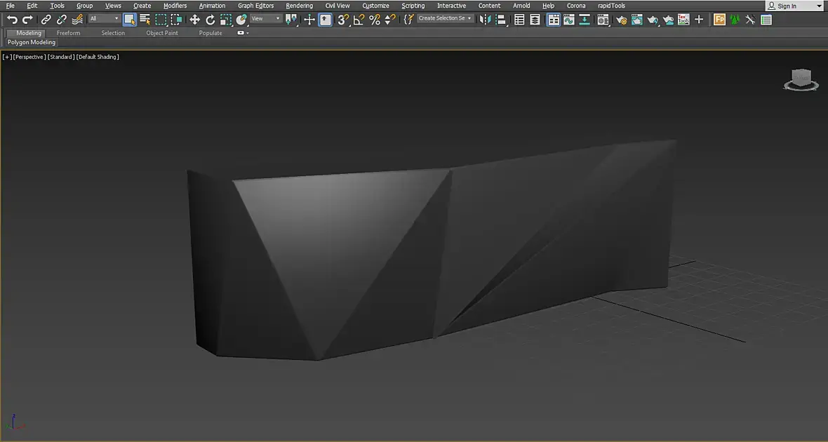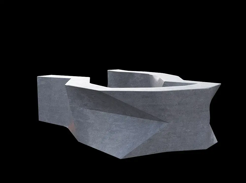 Для всей конструкции правильного результата не добиться. Сразу видно другой профиль работ )). Это же респа: внутри полки, дверцы, люди сидят на барных. Для виза снять с граней сглаживание и скорее всего столешницу экструдировать на 16мм из верхних полигонов.