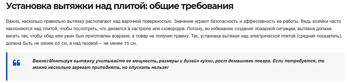 Опять не соглашусь. Над электрическими плитами высота вытяжки может быть до 75 см. А высота черных ящиков около 60 см от столешки. Над газовыми вообще можно на 85 см делать.